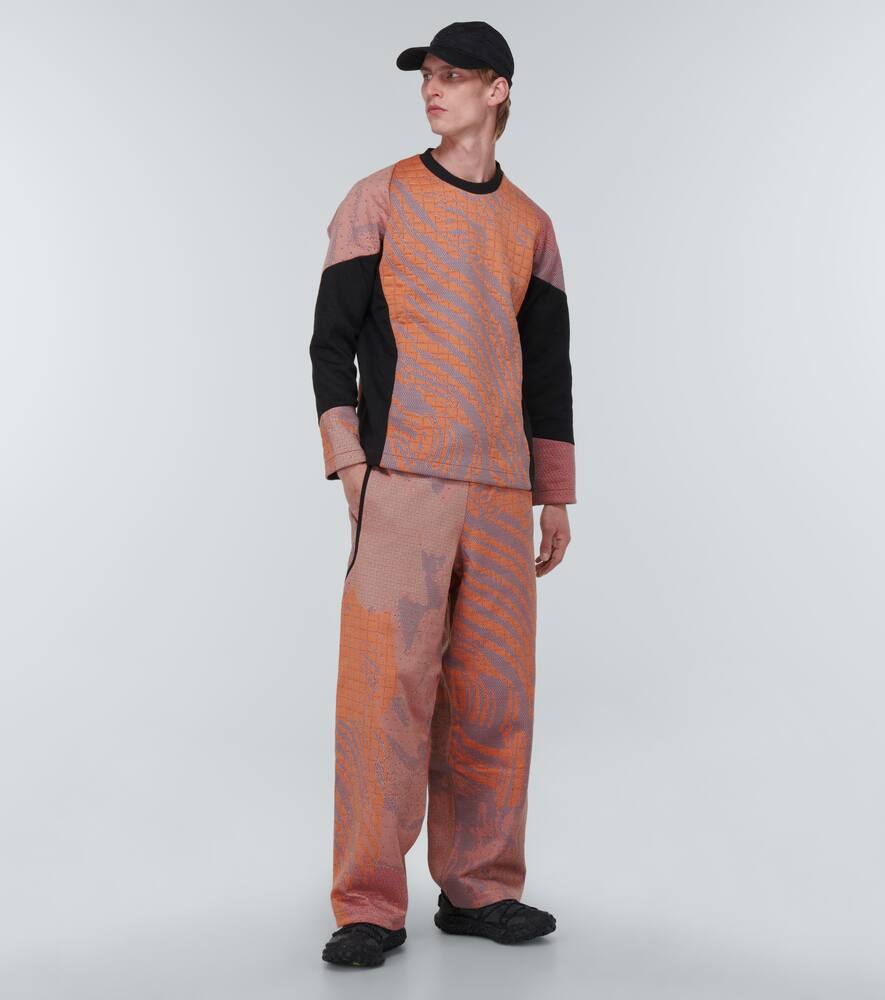 Свитер Weightmap от Byborre связан из пряжи на основе хлопка в технике пэчворк, сочетающей в себе разные толщины и вязки, что позволяет максимально точно подобрать нужные точки на теле. Версия Edition 11 этого свитера отличается цветными блоками и художественным узором в оранжево-фиолетовых тонах.