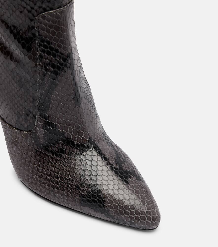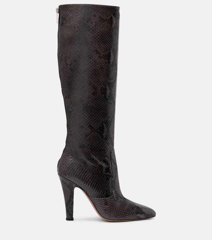 Paris Texas — итальянский обувной бренд, вдохновлённый современными женщинами со всего мира и воплощающий идею контрастов. Сапоги Elsa из кожи с эффектом змеиной кожи — это пара до колена, каблук 100 мм и острый нос.