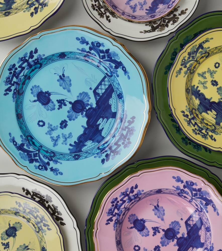 Коллекция Oriente Italiano от Ginori 1735, представляющая собой переосмысление Ясухиро Кикуоки гарофано – стилизованной гвоздики, прикреплённой в стиле шинуазри к флорентийской керамике, – возвращает нас в давно минувшие времена. Серия, отличающаяся нежными оттенками, создаваемыми с помощью техники аэрографа на знаменитом стиле Antico Doccia этого фарфорового гиганта, отличается богатой и экзотической эстетикой. Эта суповая тарелка сочетает в себе высококачественный итальянский фарфор с яркими оттенками розового и тёмно-синего, создавая яркий контраст, который оживит любой стол.