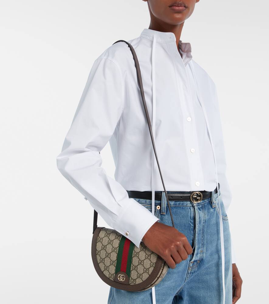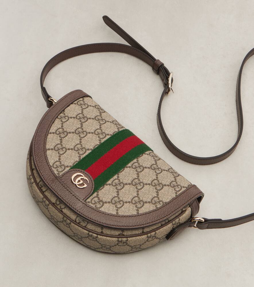 Фирменная зелёно-красная полоска Web, впервые появившаяся в 1951 году, была вдохновлена ремнями конных сёдел. Именно она стала основой этой сумки Ophidia Small через плечо, выполненной из канвы GG и дополненной мягкой кожаной отделкой.