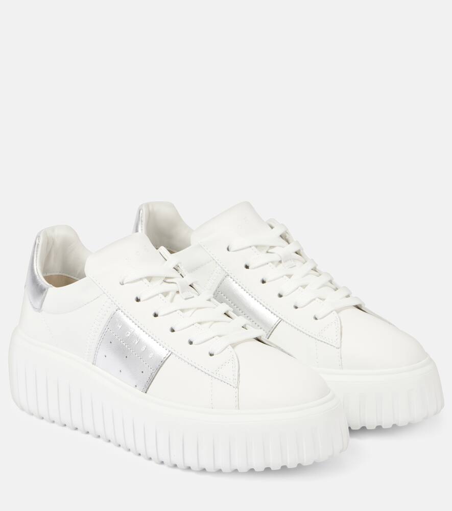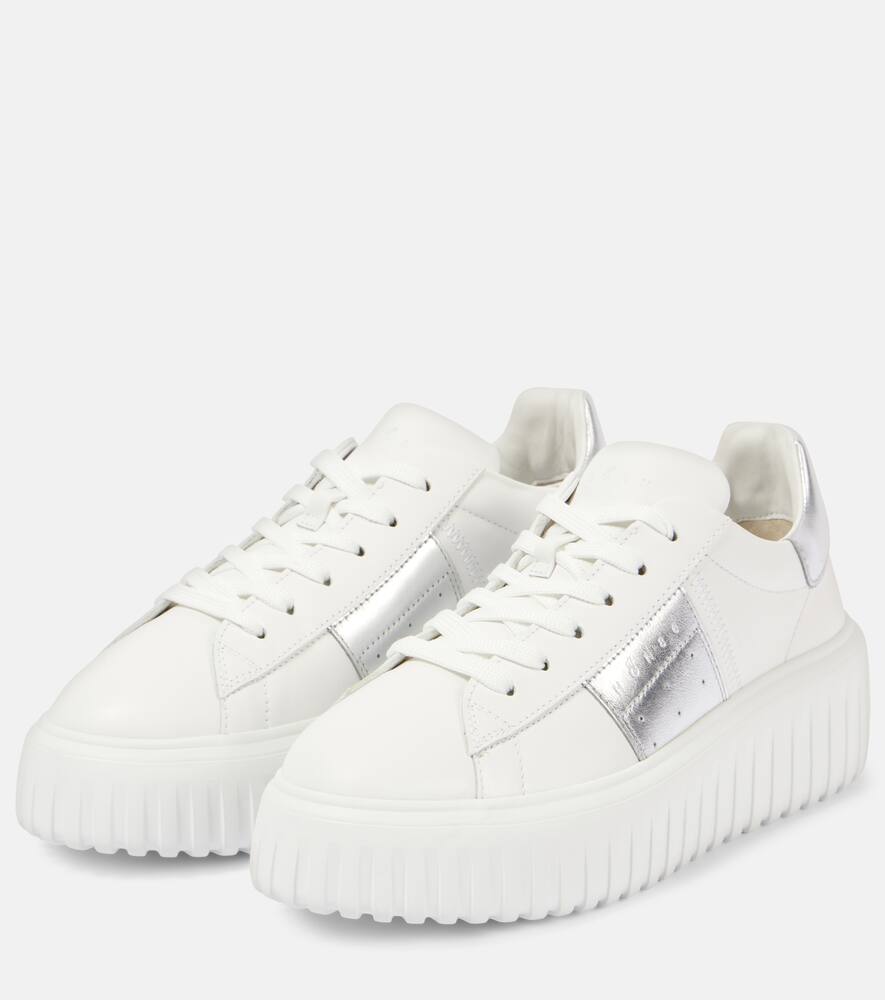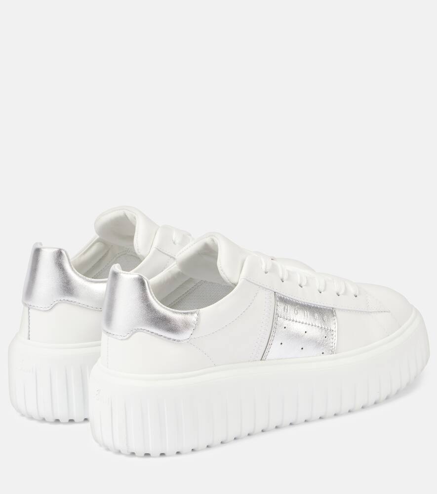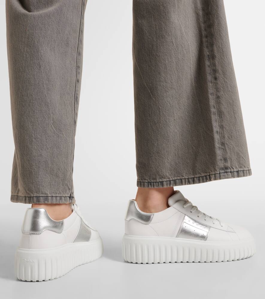 Кожаные кроссовки на платформе с горизонтальными полосками Hogan, B001+B200-Bianco Argento 43 561₽