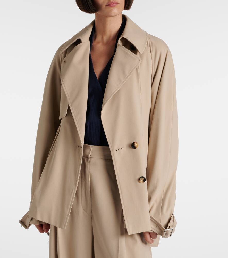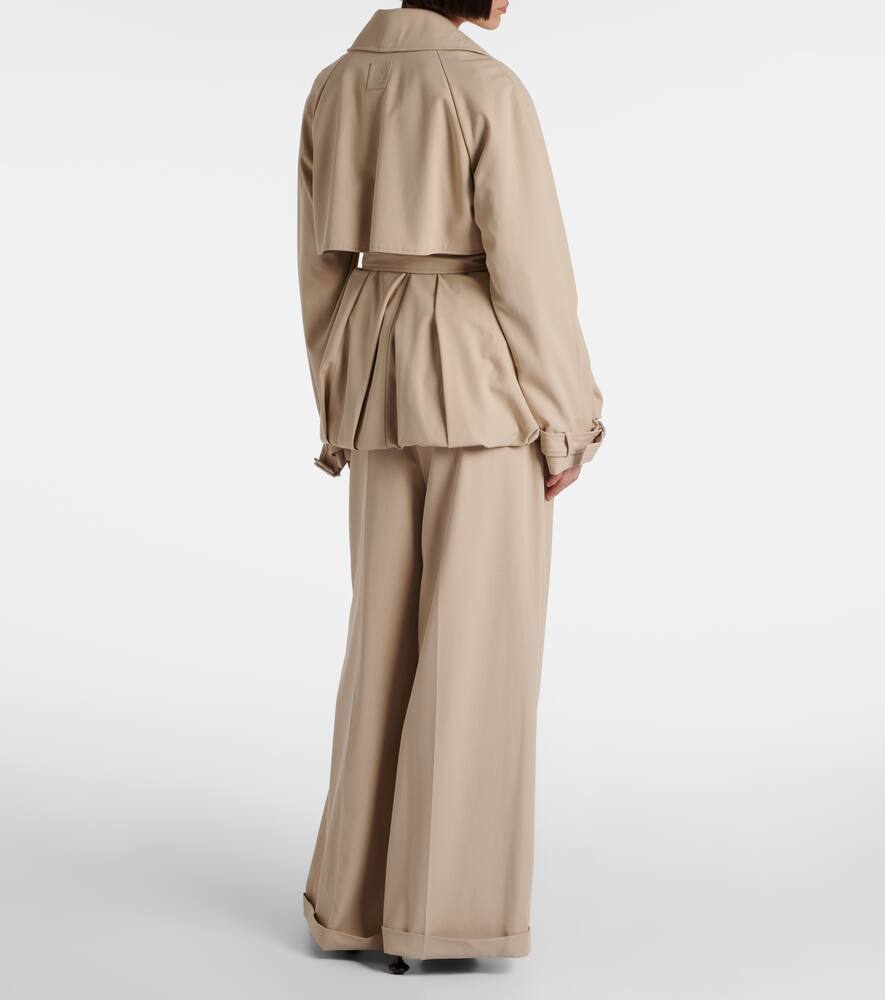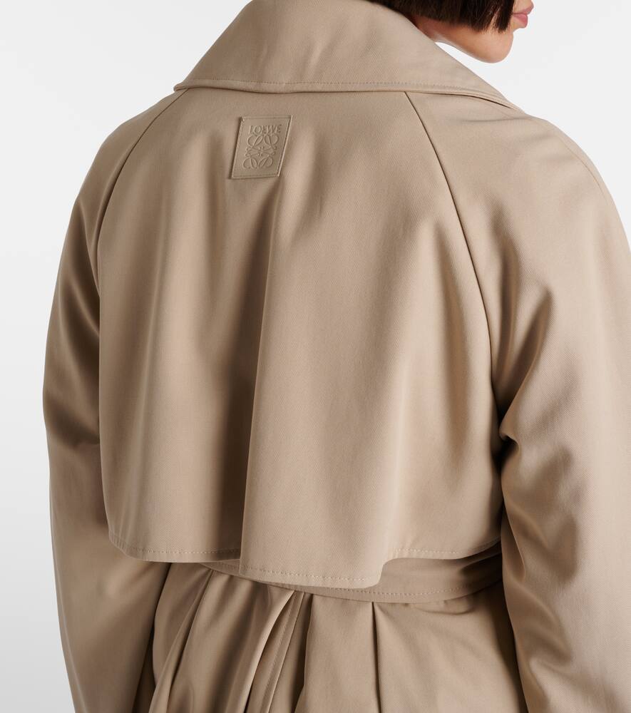 Эта куртка Loewe выполнена из хлопкового габардина в стиле тренча с поясом на талии, который подчёркивает её объём. Дизайн дополнен ветрозащитной планкой и манжетами на пряжках.