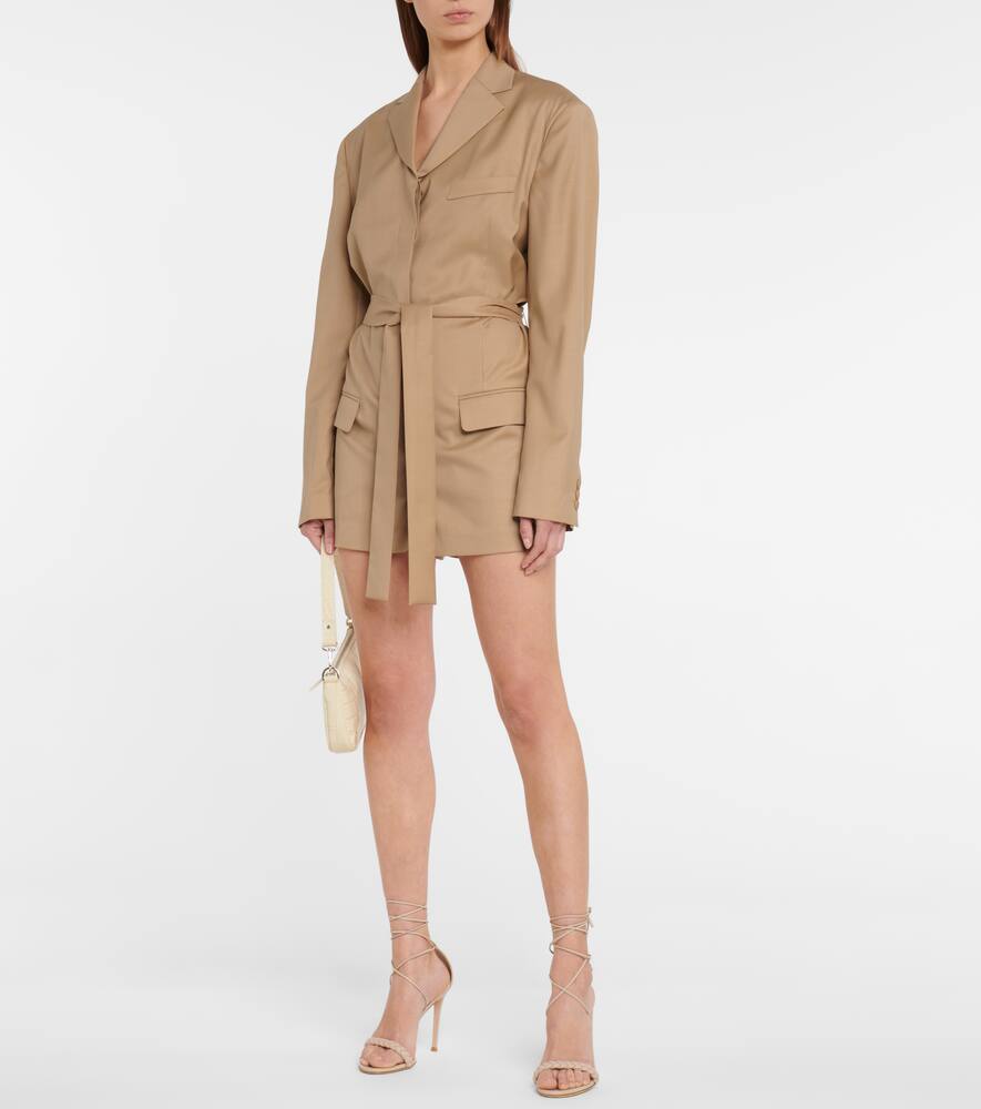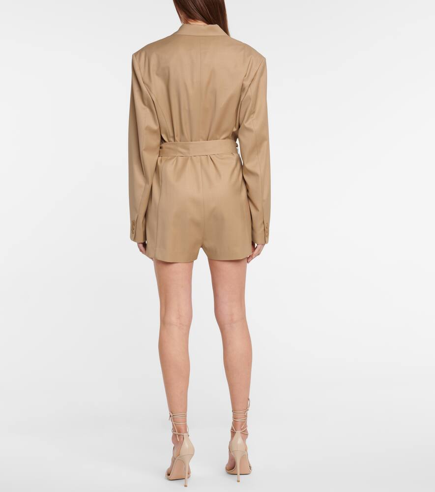 Этот комбинезон с поясом, одновременно приталенный и свободный, воплощает современный подход LOW CLASSIC к дизайну. В бежевой модели присутствует немного кашемира для мягкости, а крой напоминает блейзер с подбитыми плечами, распашным воротником с заостренными лацканами и комбинацией прорезных и клапанных карманов.