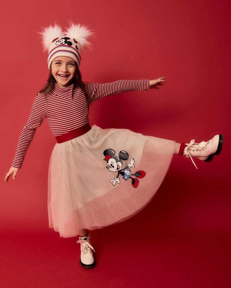 Эта юбка от Monnalisa, созданная в сотрудничестве с Disney, выполнена из нескольких слоёв воздушного тюля – малышам понравится кружиться в ней. Модель дополнена эластичным поясом и очаровательным принтом Минни Маус.