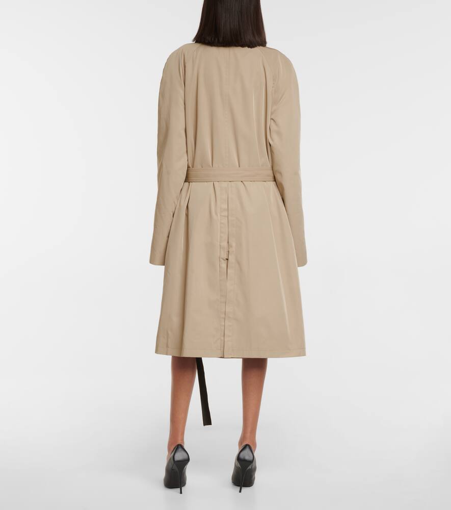 Y/Project представляет эту бежевую версию классического тренча с эксцентричным многослойным дизайном. Тренчкот имеет заостренный воротник, пояс на талии для более приталенного силуэта и среднюю длину.