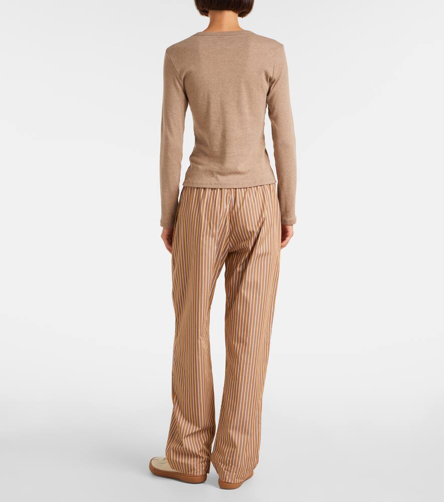 Простая бежевая футболка от Leset добавит многогранности вашему повседневному гардеробу. Nando — это приталенная модель с длинными рукавами, классическим круглым вырезом и тонкой ребристой хлопковой вязкой.