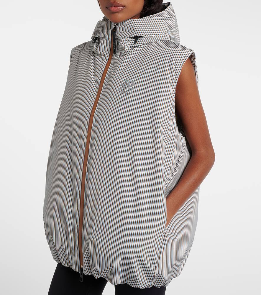 Этот стеганый жилет, созданный в результате сотрудничества Loewe и On, идеально подходит для активного образа жизни. Модель в полоску дополнена капюшоном на шнурке, карманами на молнии, эластичным подолом и узнаваемой надписью Anagram.