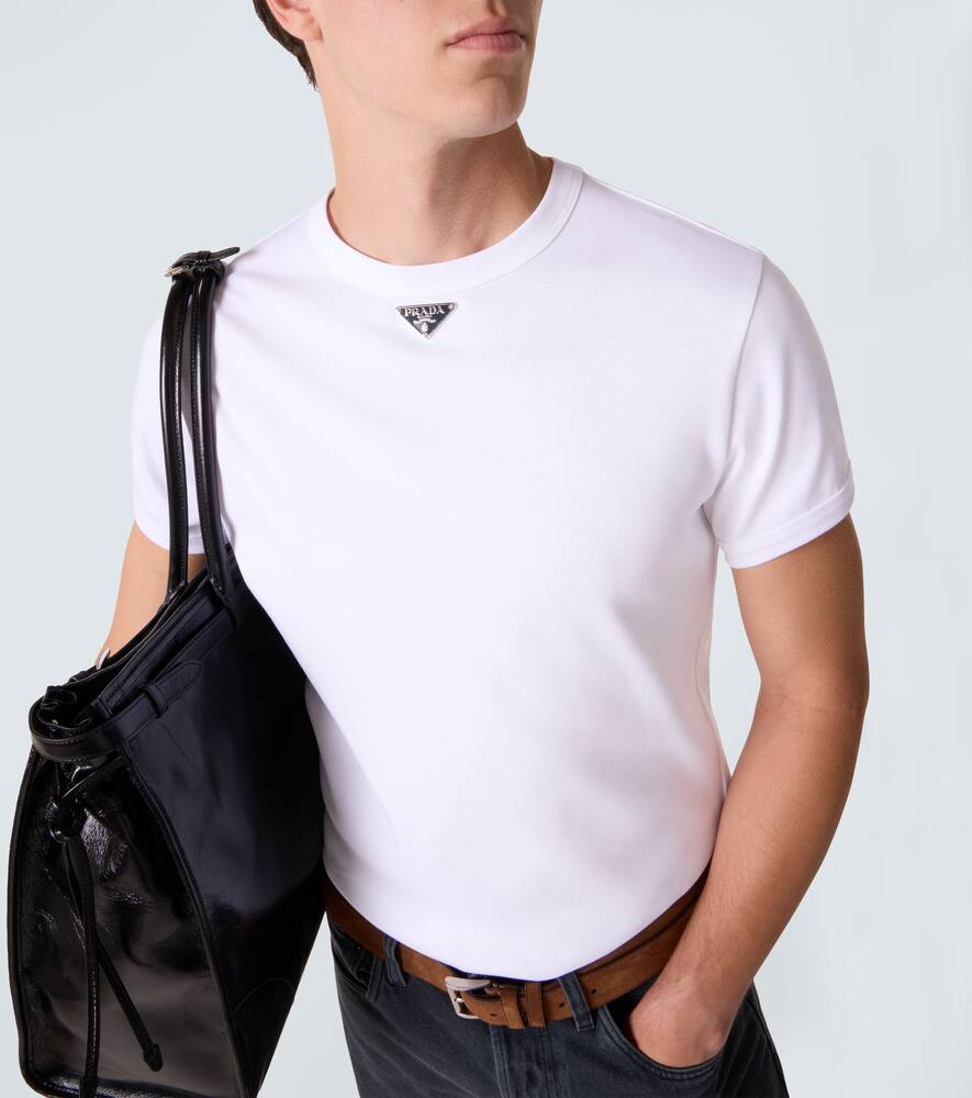 Футболка из хлопкового трикотажа Triangle Prada, Bianco