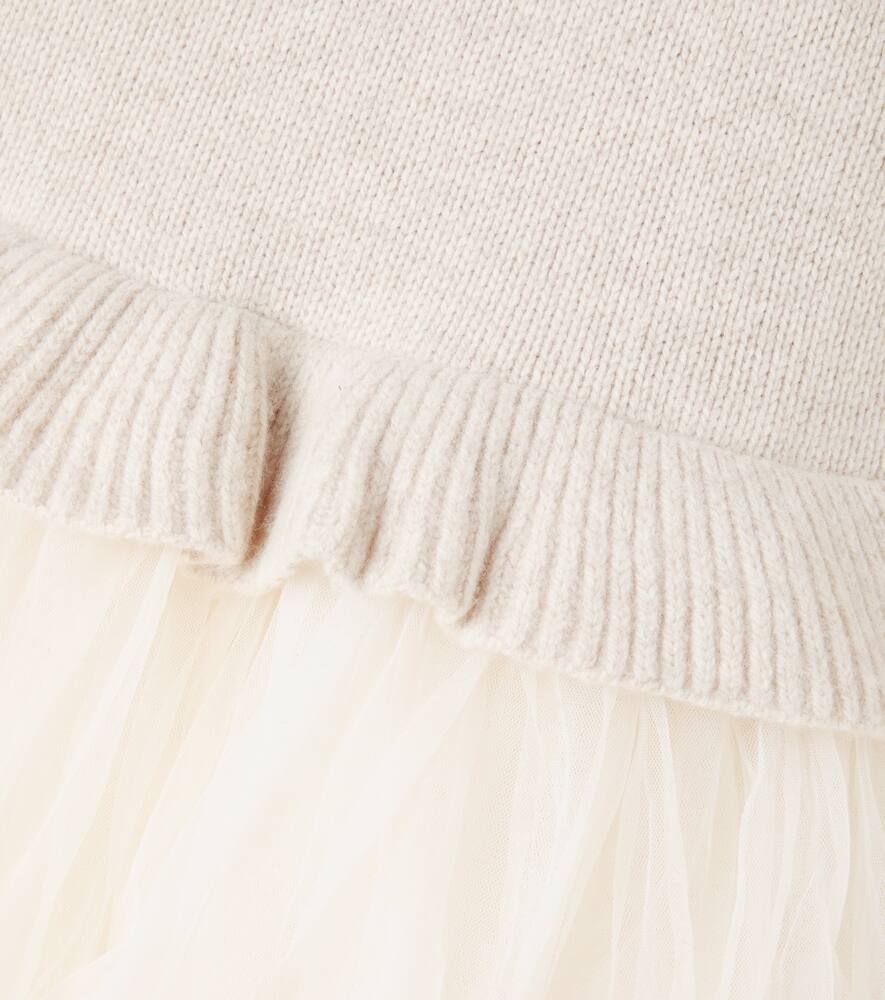 Все модели Donsje изготавливаются вручную из тщательно подобранных материалов, что гарантирует высочайшее качество и долговечность. Платье Paulien из смесовой шерсти представляет собой панельное изделие с трикотажным лифом и юбкой из тюля.
