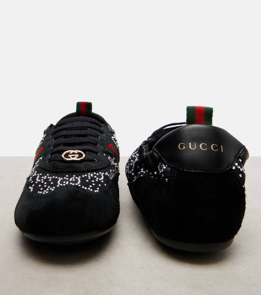 Кроссовки Gucci Shift от Gucci, сочетающие в себе лёгкий, динамичный силуэт и повседневный гламур, станут вашей любимой парой. Модель с замшевой отделкой украшена культовыми мотивами бренда, включая полоску Web и кристаллы GG на верхней части.