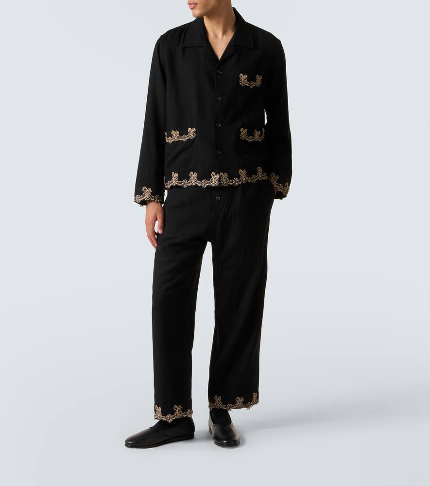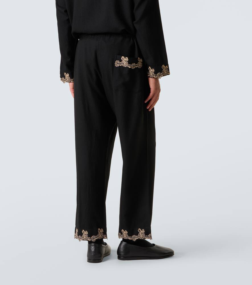 Пижамные брюки Laurelist от Bode, выполненные из шерстяной фланели, украшены вышитой имитацией винтажной парижской бисероплетения. Модель имеет талию на шнурке, боковые и задние карманы, а также застежку на пуговицы.