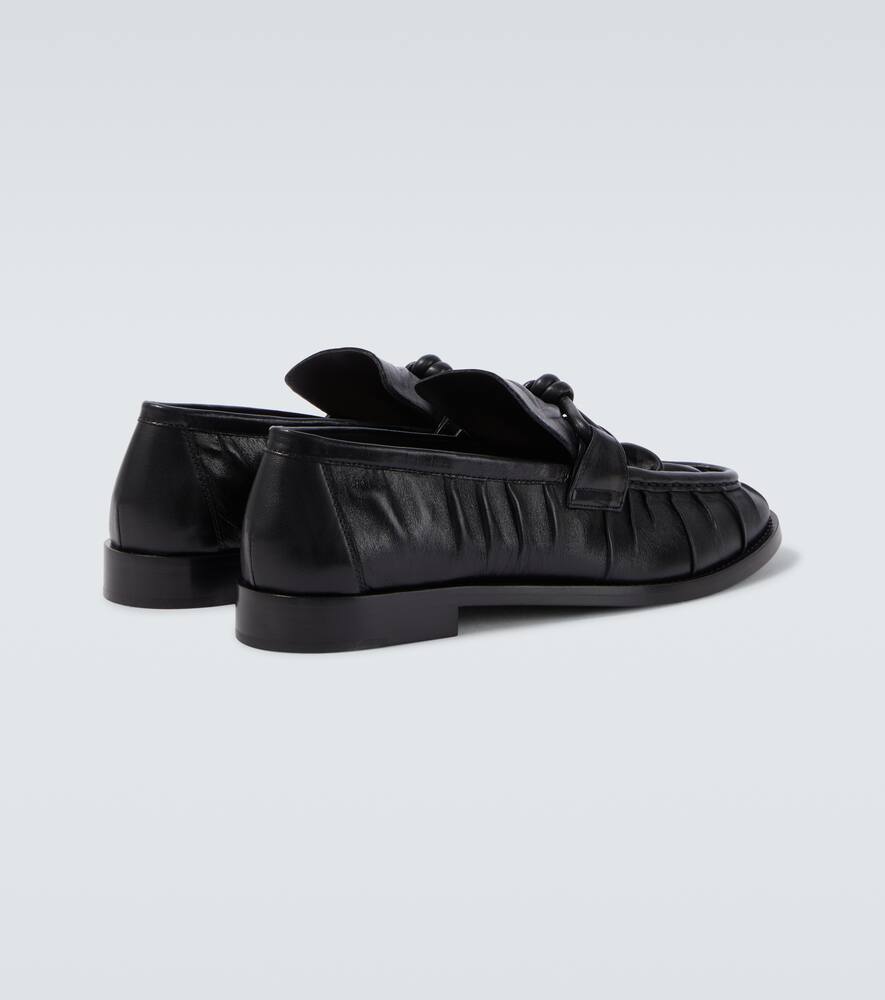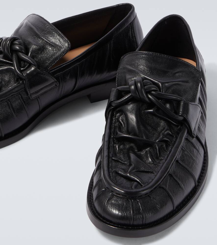 Узловатые детали, ставшие синонимом Bottega Veneta ещё в 90-х годах, стали неотъемлемой частью идентичности дома. Лоферы Astaire изготовлены из кожи с жатой отделкой и украшены культовым мотивом.