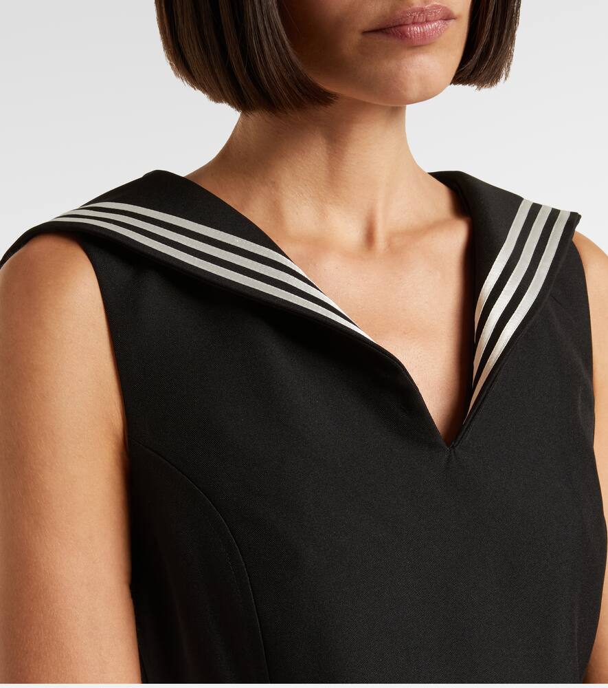Бренд Coperni назван в честь астронома Николая Коперника, чьи точные работы вдохновляют бренд на создание проработанных до мельчайших деталей моделей. Это приталенное мини-платье отличается полосатым воротником-накидкой, плиссированной юбкой и поясом-утяжкой.
