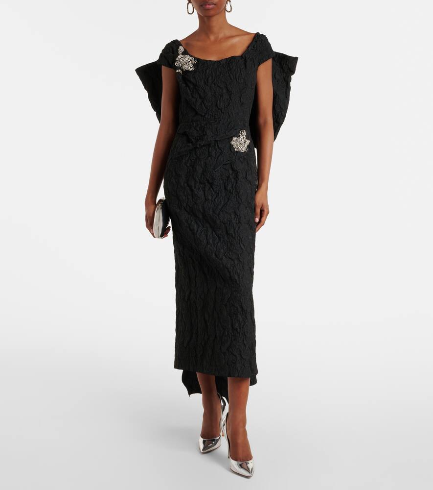 Вышитое платье из жаккарда клоке Erdem, Black 271 758₽