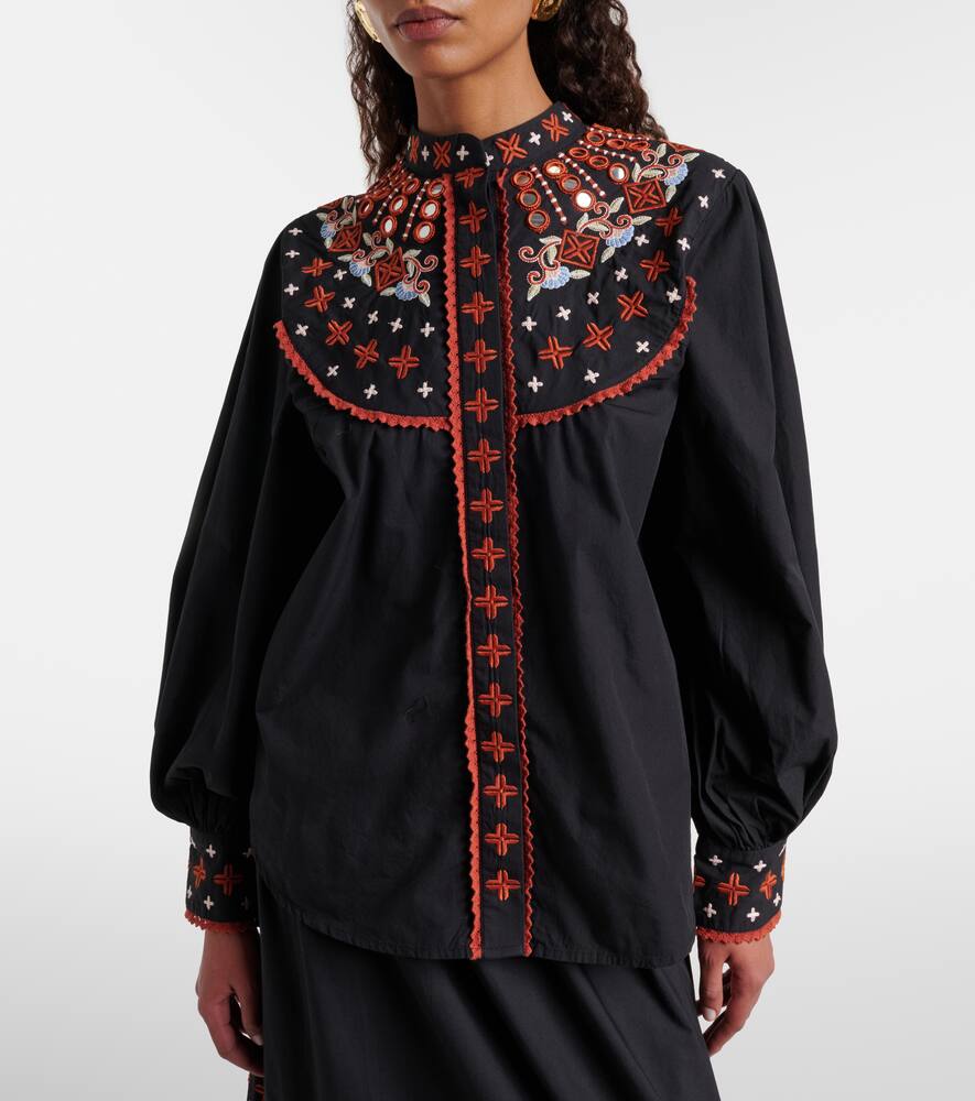 Вышитая хлопковая рубашка Farm Rio, Black 58 186₽