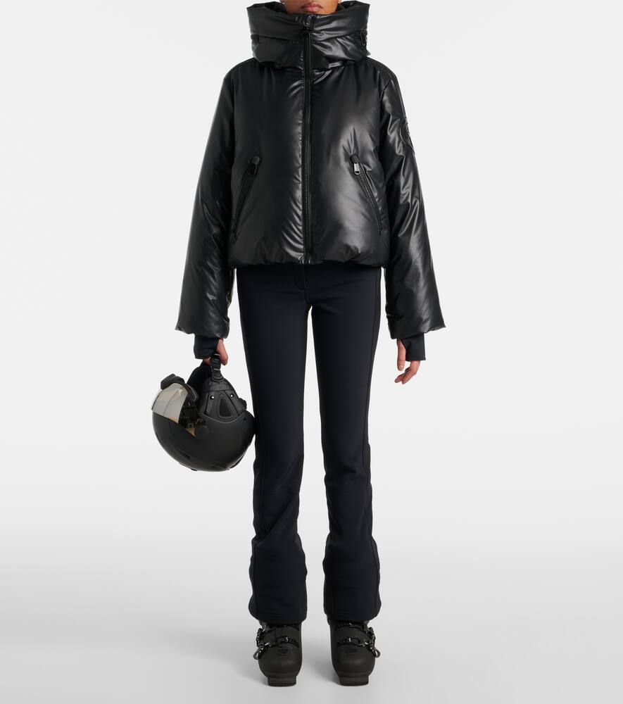 Горнолыжная куртка Nero от Goldbergh отличается лёгким блеском и укороченным кроем. Утеплённая пухом, куртка имеет большой воротник со скрытым капюшоном, а левый рукав украшен крупной анаграммой.