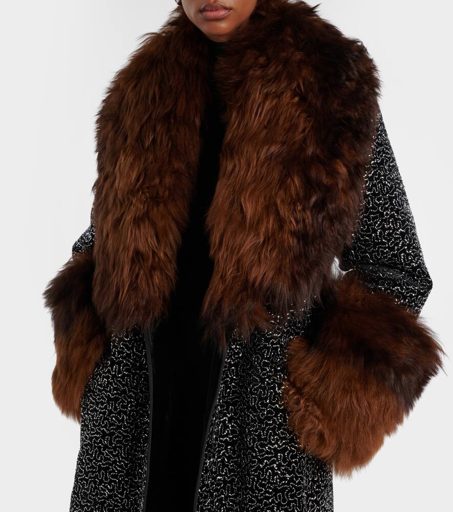 Украшенное пальто с отделкой из овчины Jacques Wei, Black