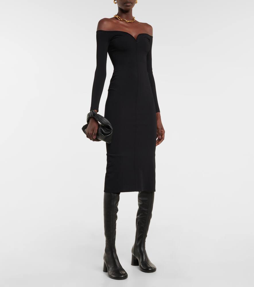 Обратите внимание на современную классику, например, на высокие сапоги Admiral от Khaite. Они изготовлены в Италии из мягкой чёрной кожи наппа и оснащены фигурными цилиндрическими наборными каблуками.