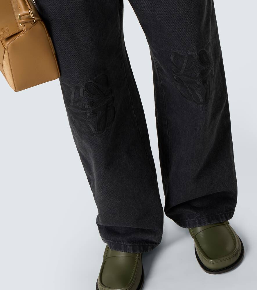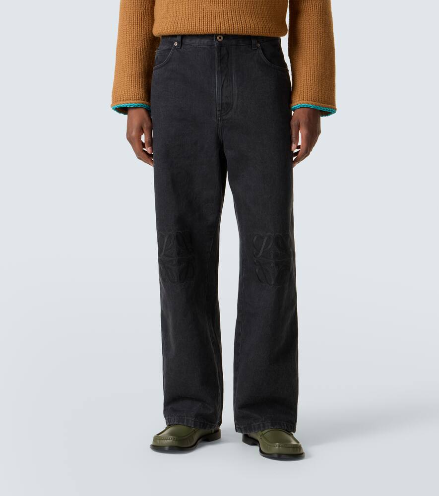 Эти джинсы широкого кроя от Loewe украшены фирменной вышивкой Anagram на коленях. Они выполнены из денима чёрного цвета и имеют высокую посадку и свободный крой.