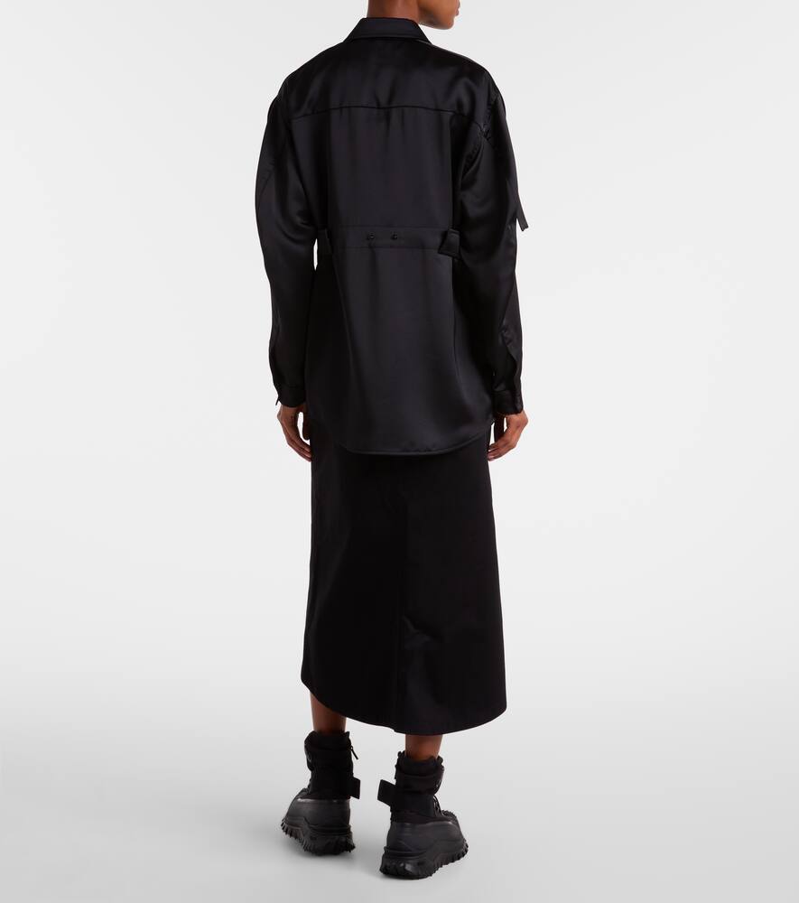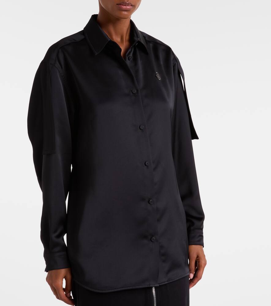 Атласная рубашка Moncler Genius, созданная в рамках коллаборации Moncler x EE72 by Edward Enninful, отличается классическим прямым воротником, планкой на пуговицах и манжетами на одной пуговице. Модель с регулируемыми хлястиками на талии отражает ориентацию бренда на изысканные базовые вещи с тонкими функциональными деталями.