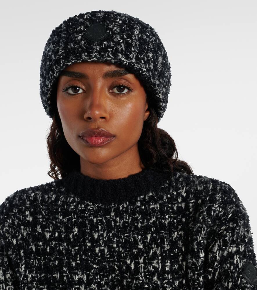 Шапка-бини из шерсти и хлопка Logo Moncler, Black