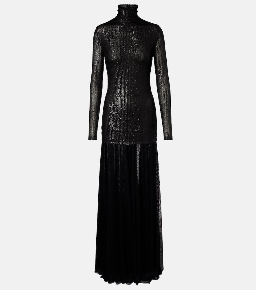 Блестящее платье-водолазка из сетки Norma Kamali, Black