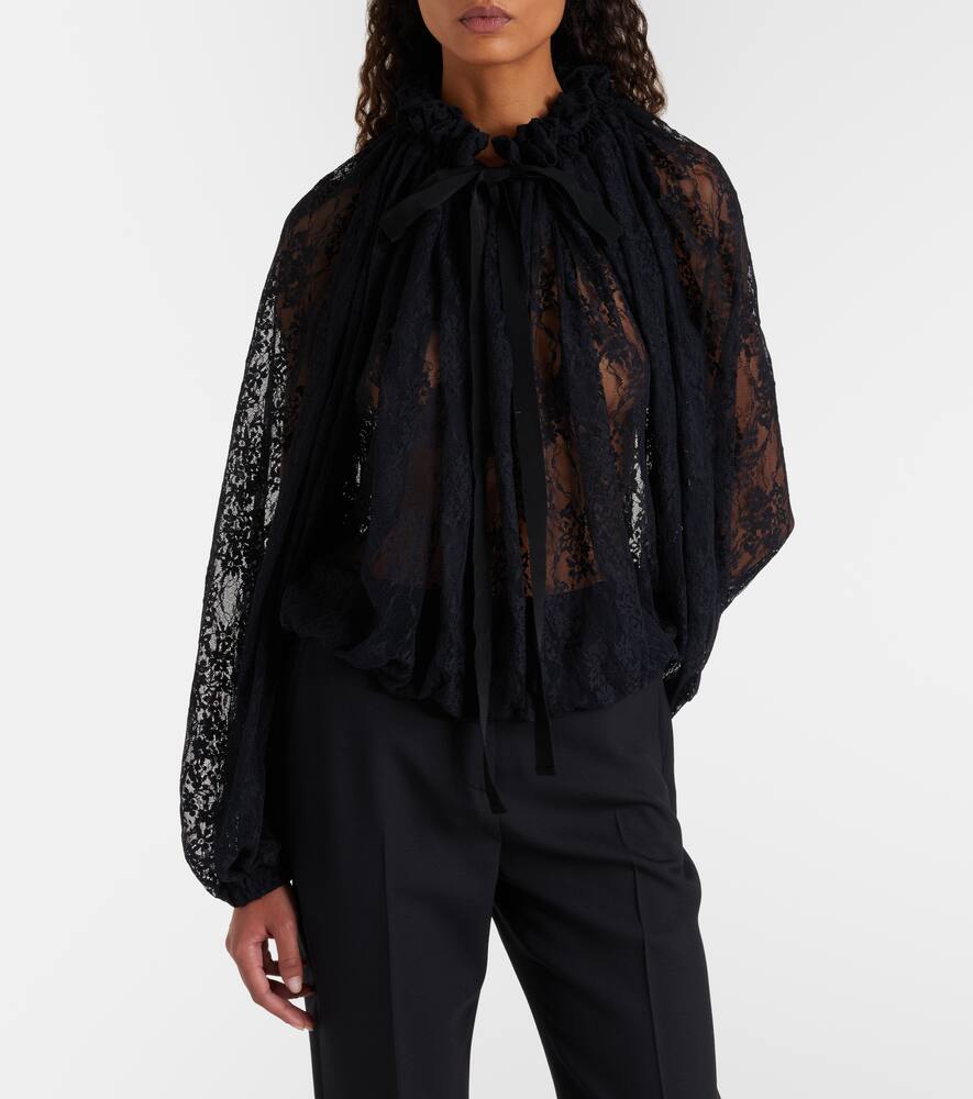 Patou продолжает определять парижский стиль изысканными моделями. Эта блузка из нежного цветочного кружева отличается объёмным силуэтом и регулируемым воротником с лентами из репсовой ленты.