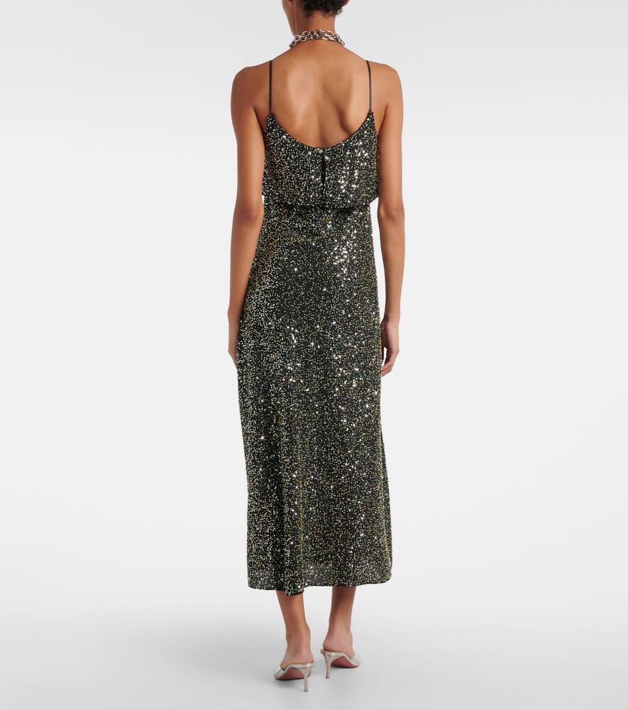 Инновационный дух Rabanne, прославившийся созданием гламурных моделей из неожиданных материалов, продолжает разрушать границы. Это платье-комбинация из крепа, расшитое пайетками и бисером, имеет круглый вырез и сборку выше линии талии.