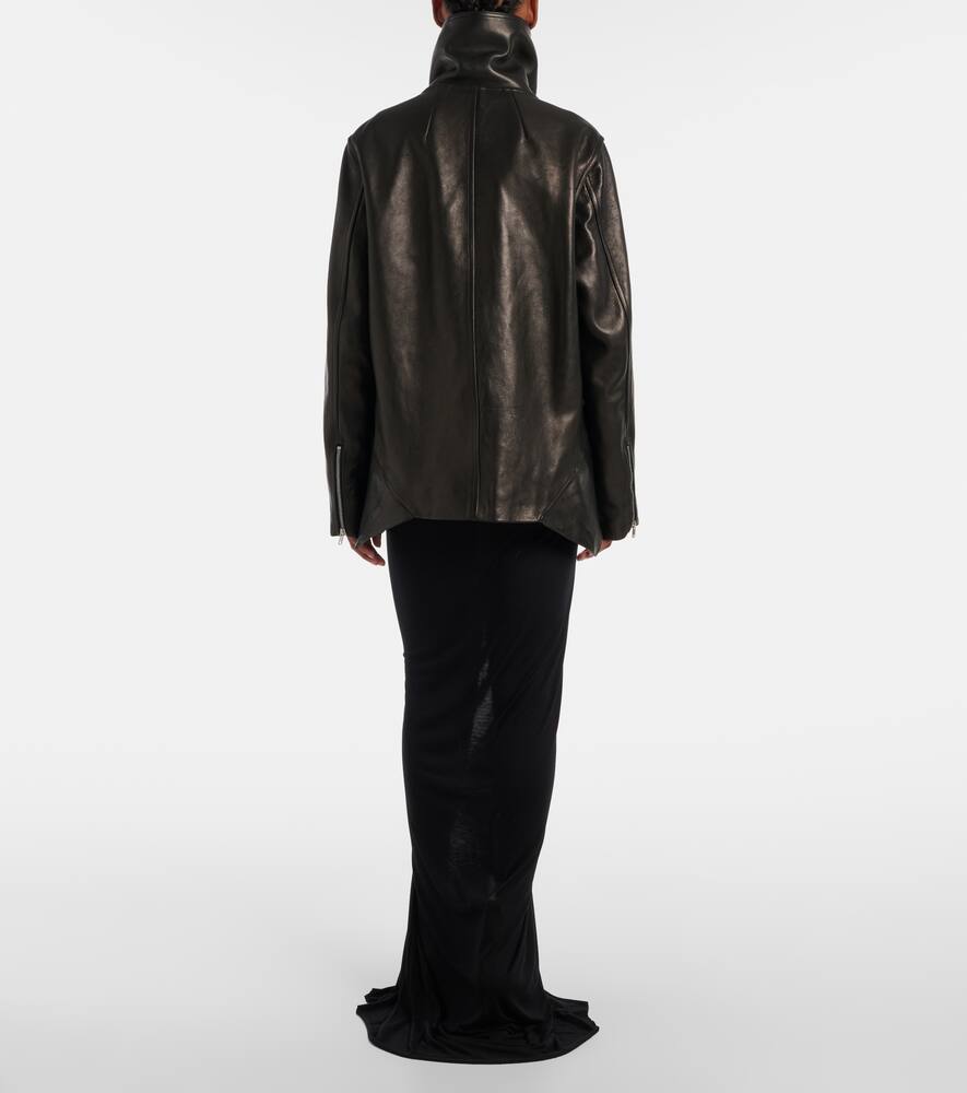 Рик Оуэнс, метко прозванный Властелином тьмы, привносит готические и индустриальные мотивы в авангардный дизайн. Эта современная куртка из мягкой полированной кожи с высоким вырезом и асимметричным подолом.