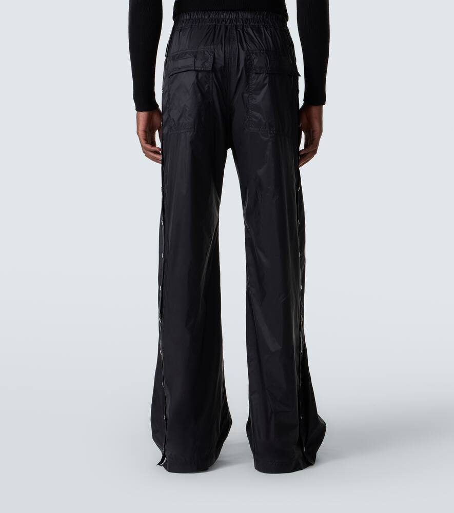 Эти брюки Pusher из коллекции DRKSHDW Рика Оуэнса представлены в свободном широком силуэте. Изготовлены из технологичной ткани, имеют эластичный пояс на шнурке и застёжку на кнопки по обеим сторонам штанин.