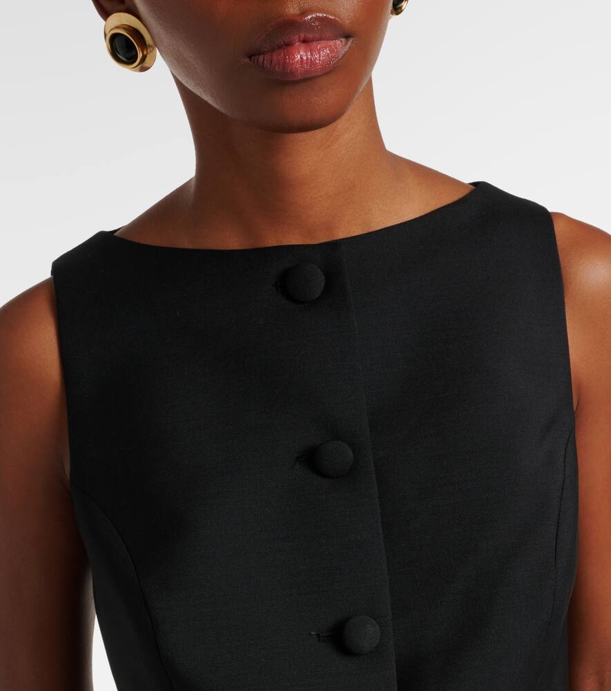 Róhe привносит современную интерпретацию в традиционные изделия, такие как этот шикарный жилет. Изысканный дизайн создаёт ощущение мягкости благодаря обтянутым тканью пуговицам, вырезу лодочка и крепу из шерсти и мохера.