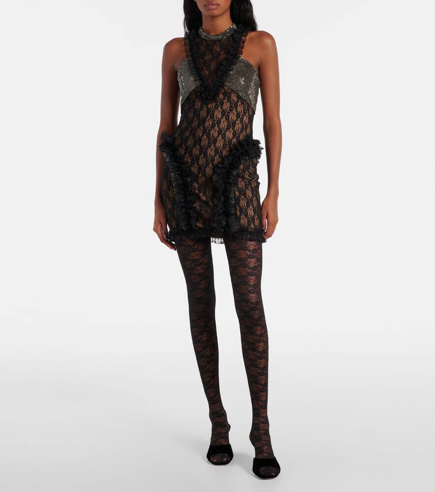 Мини-платье Christopher Kane с кружевом и декоративными элементами Self-Portrait, Black