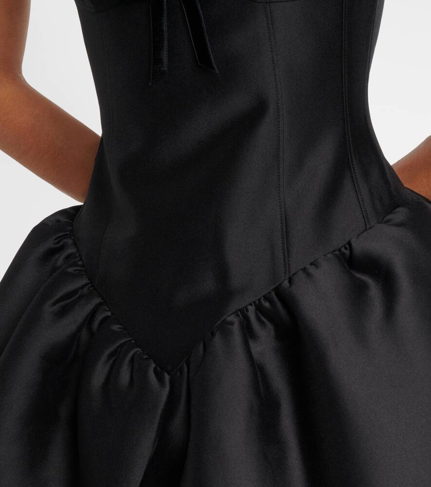 Shushu/Tong, отличающаяся скульптурными силуэтами и элегантным шармом, воплощает собой передовой стиль. Это платье миди приталенного силуэта с утягивающей талией дополнено очаровательным бархатным бантом по центру.