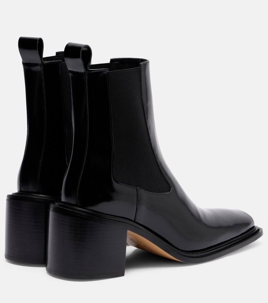 Обувь Souliers Martinez воплощает вневременную эстетику, пропитанную средиземноморским духом и парижским шиком. Ботинки Dallas Chelsea из полированной чёрной кожи — это элегантная модель с блочным каблуком высотой 60 мм.