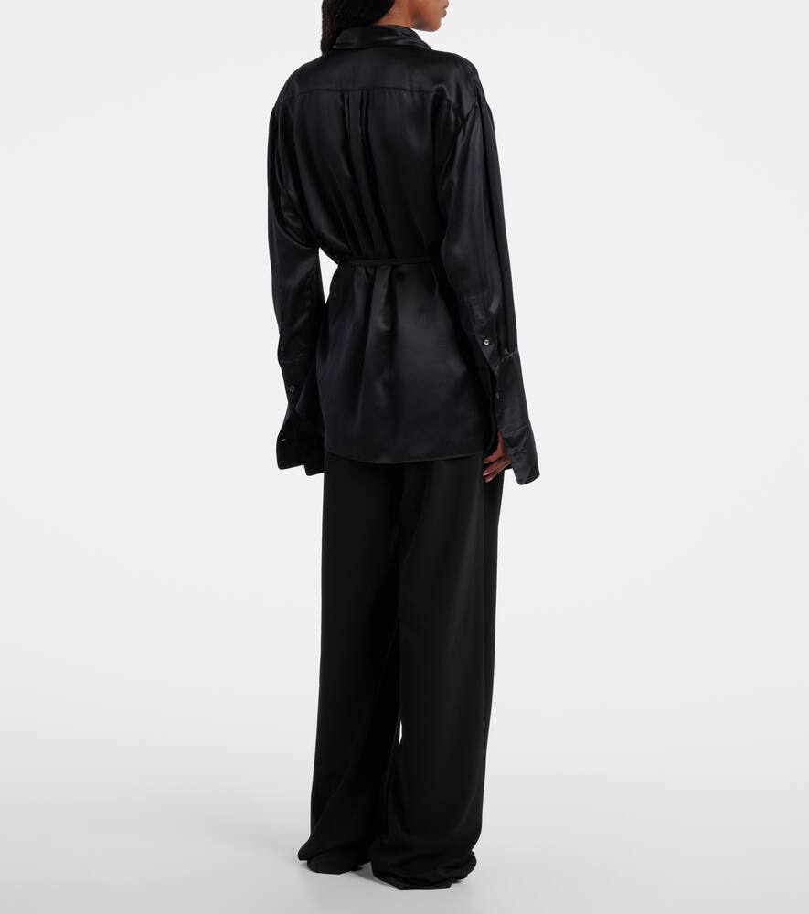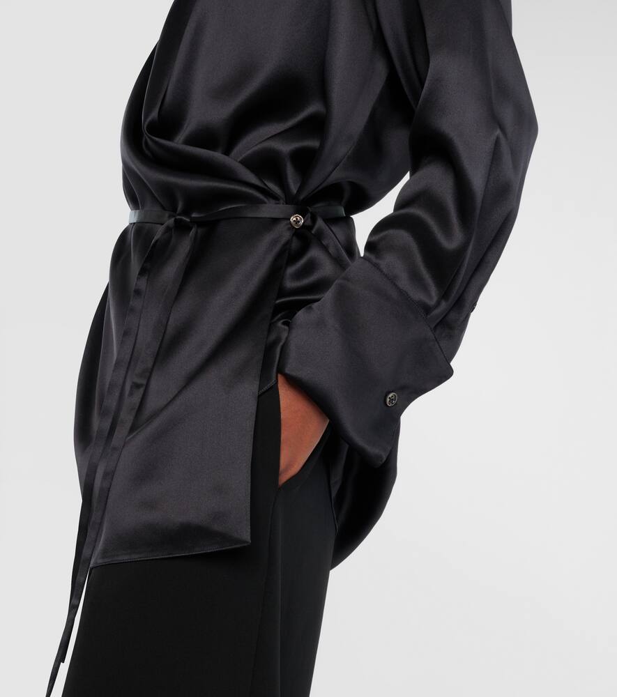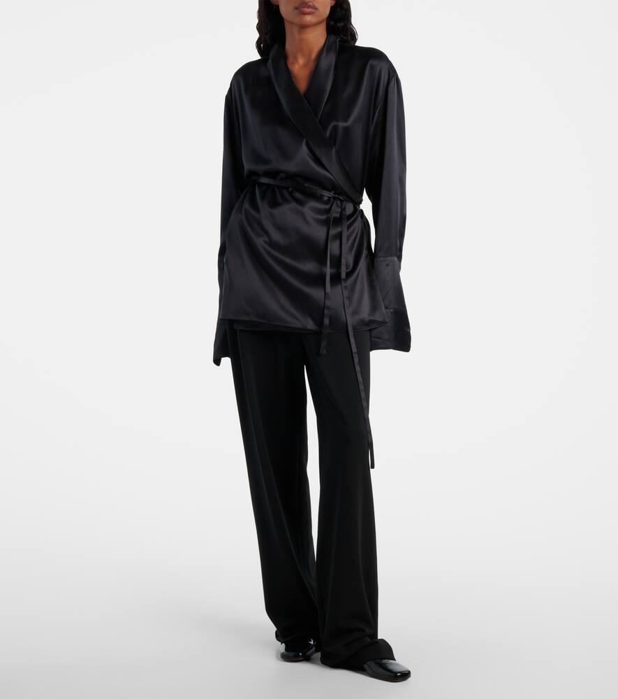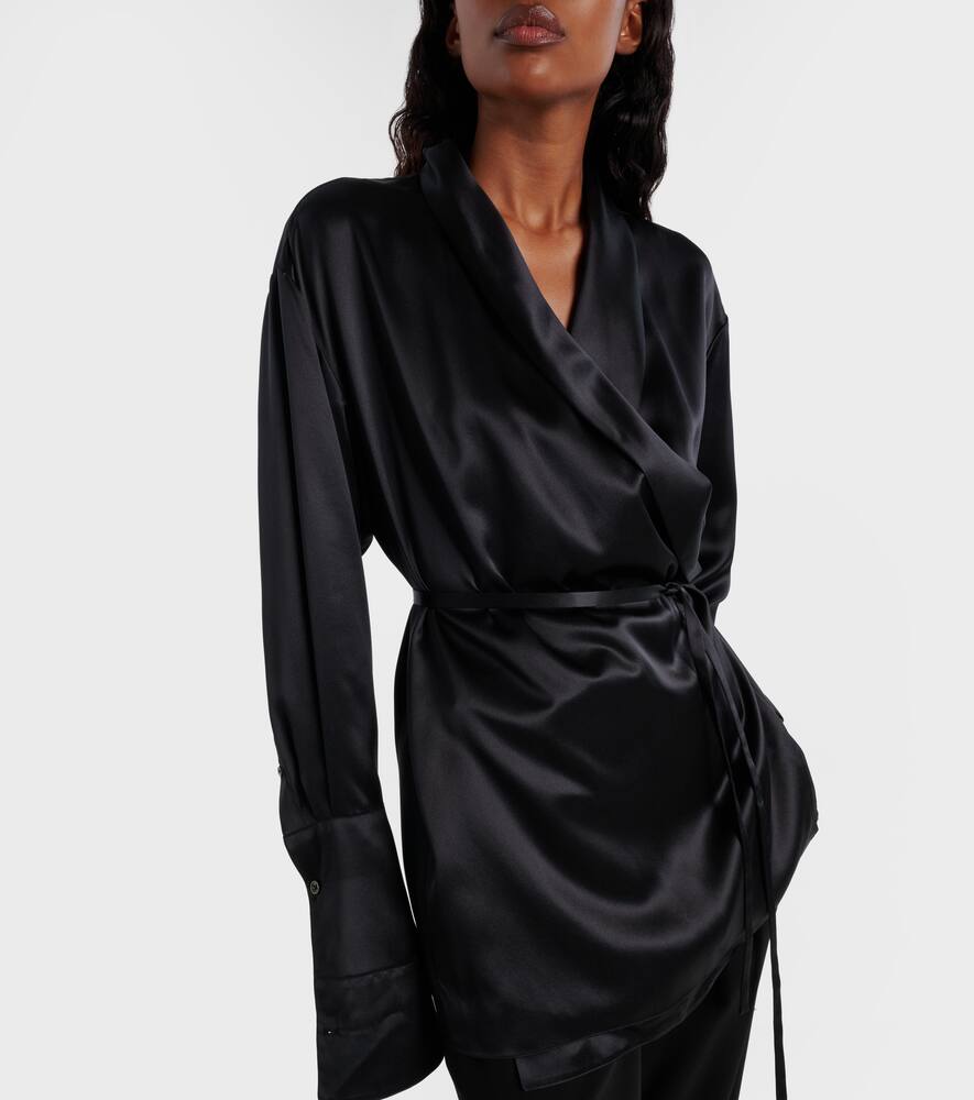 Шёлковый сатиновый топ Eivie с запахом The Row, Black