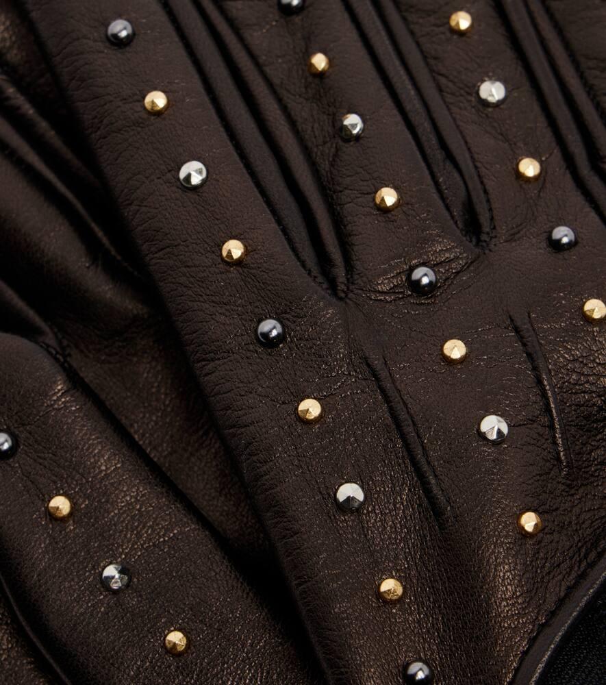 Перчатки кожаные с вырезом и шипами Versace, Black