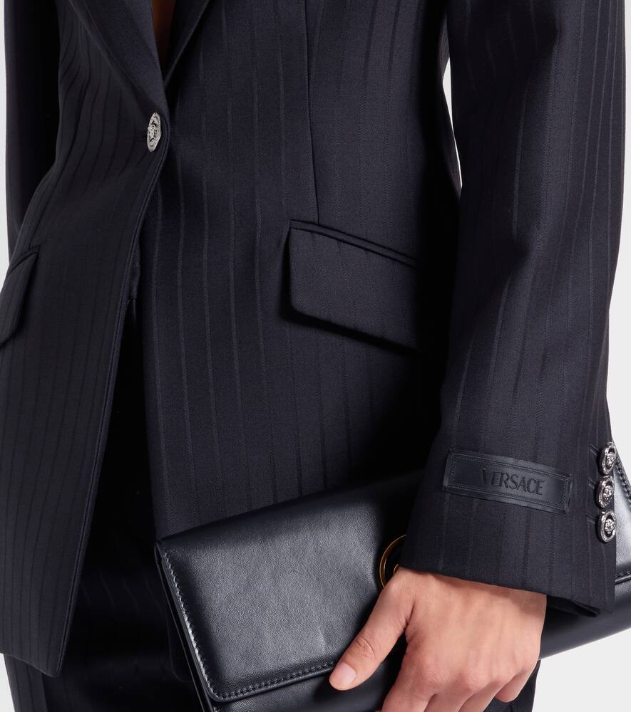 Вдохновленная греческой мифологией, голова Медузы стала главным символом дома Versace. Этот блейзер в тонкую полоску выполнен из натуральной шерсти и дополнен пуговицами с культовым мотивом.