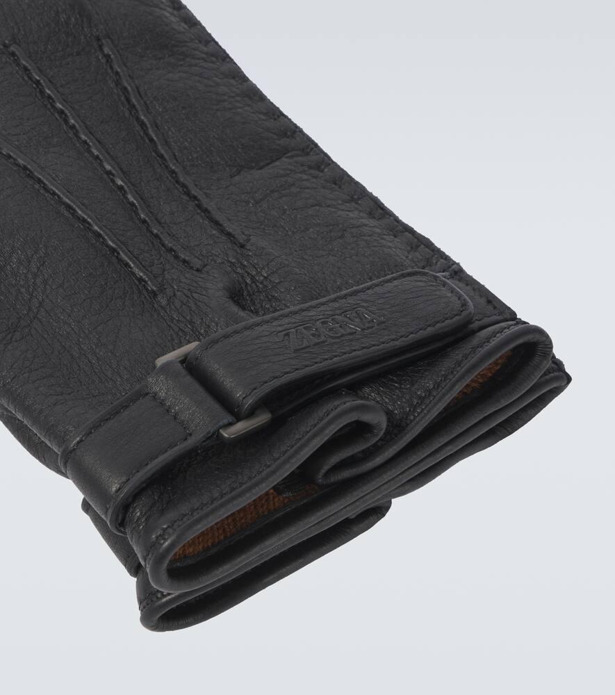 Тисненые кожаные перчатки Zegna, Black 114 138₽