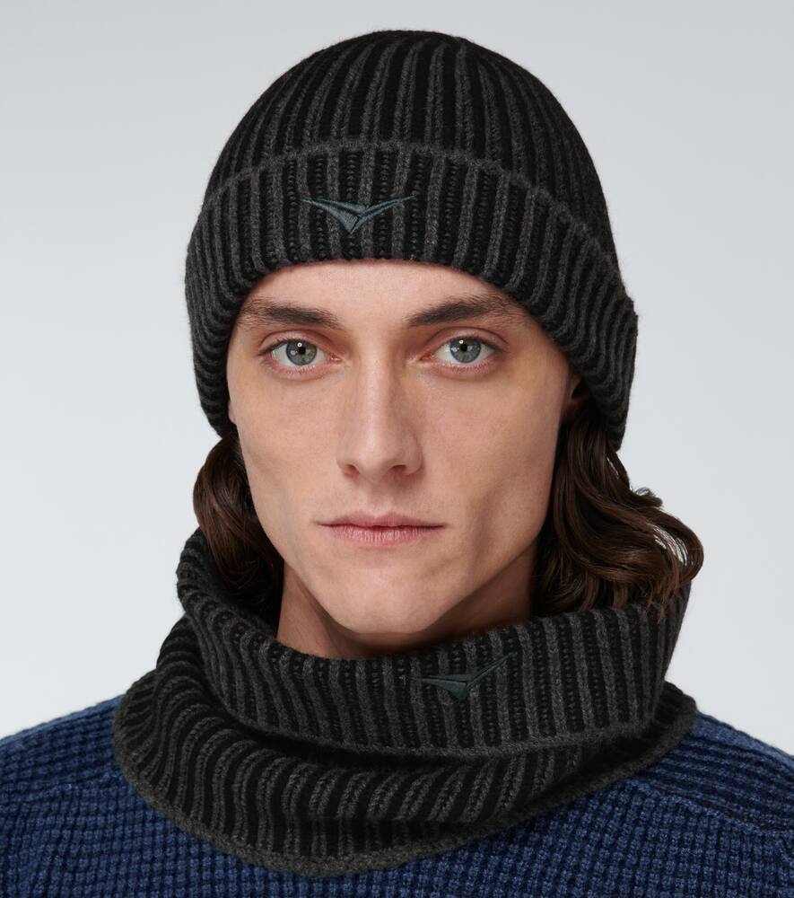 Эта шапка-бини от SEASE в рубчик черного и темно-серого цветов изготовлена в Италии из мягкого 100% кашемира.