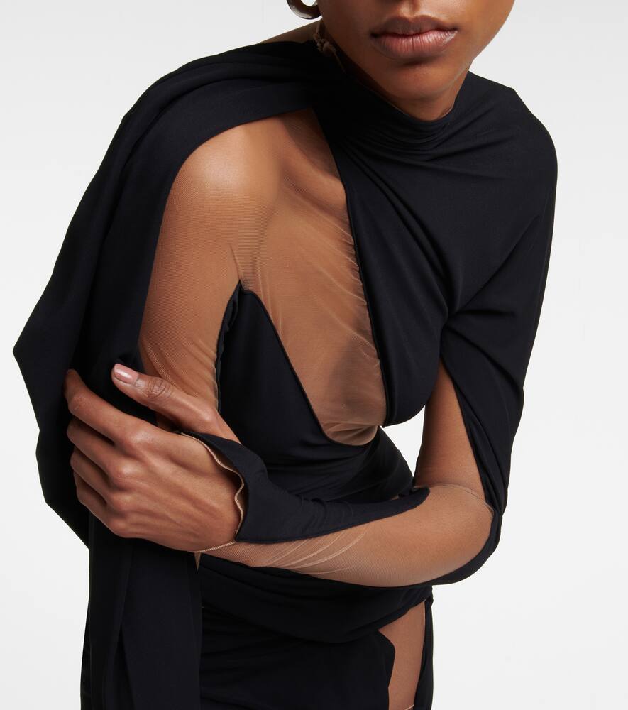 Мини-платье с драпировкой и тюлем Mugler, Black Nude 01