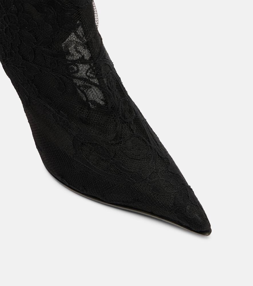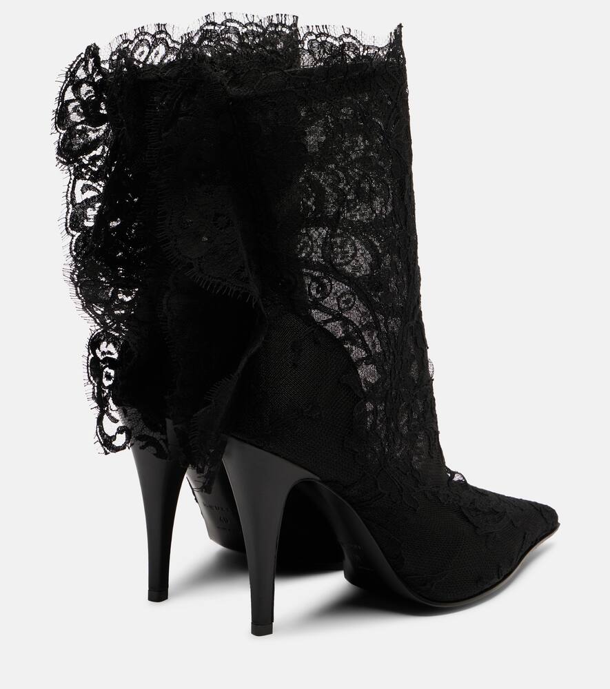 McQueen сочетает авангардный дизайн с изысканным мастерством, создавая культовые, эффектные модели. Ботильоны Heron на шпильке высотой 105 мм украшены изысканной кружевной вышивкой и имеют заостренные носки.