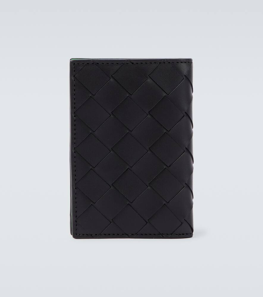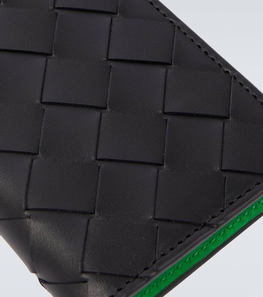Кожаный кошелёк Intrecciato Bottega Veneta, Black/Grass-Silver