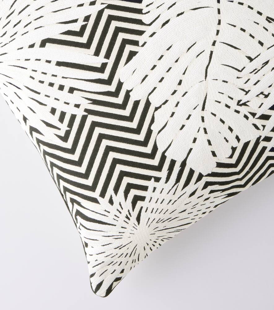 Преобразите свое жилое пространство с помощью оригинального текстиля Missoni, например, подушки Ombre. Этот жаккардовый узор с монохромным акцентом украшен растительным мотивом на фирменном зигзагообразном фоне.