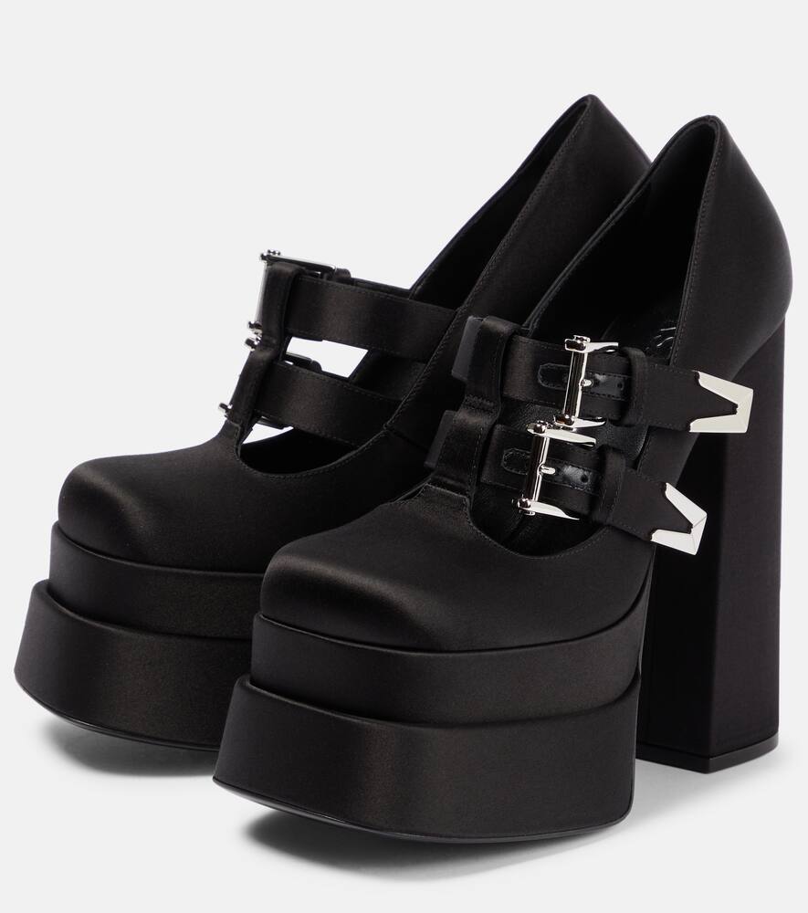 Атласные платформенные туфли Medusa Aevitas Versace, Black-Palladium