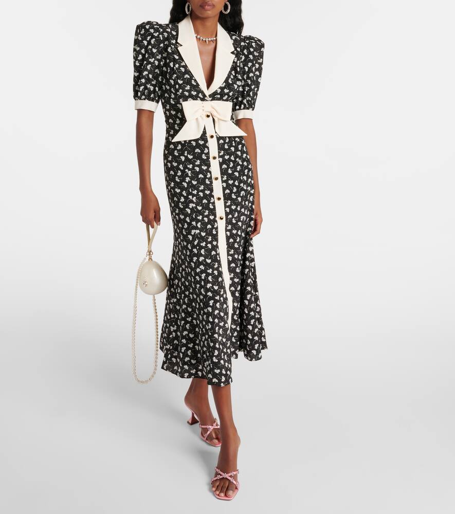 Шёлковое макси-платье с принтом в виде бантов Alessandra Rich, Black-White