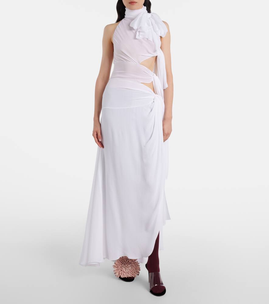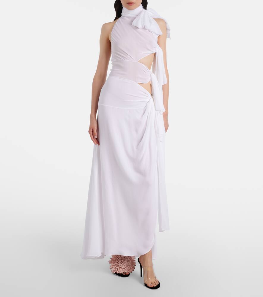 Асимметричное макси-платье из жоржета с бантом Alaïa, Blanc