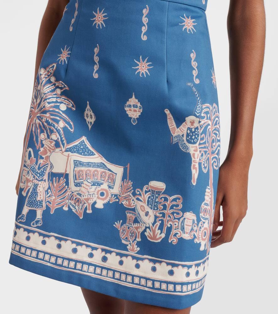Хлопковое мини-платье-бюстье с принтом акации Alémais, Blue