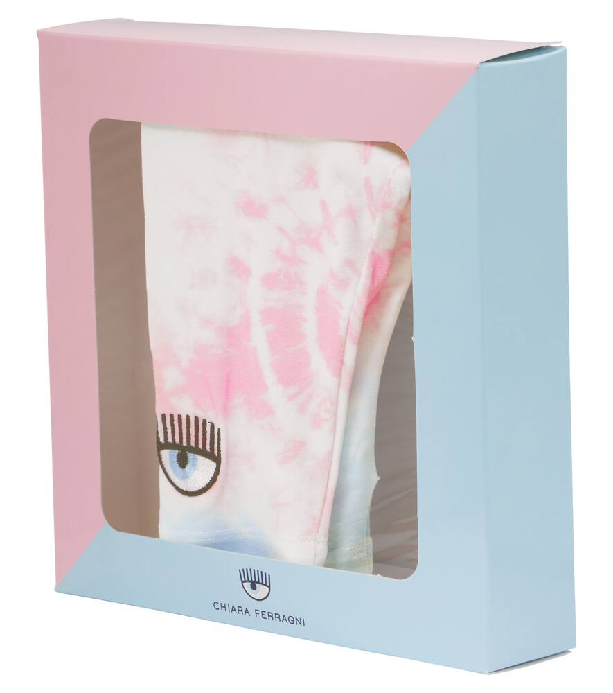 Эти леггинсы Monnalisa x Chiara Ferragni станут очаровательным дополнением к роскошному гардеробу малыша и украшены ярким принтом в стиле тай-дай и культовыми вышитыми нашивками в виде звездочек на щиколотках.