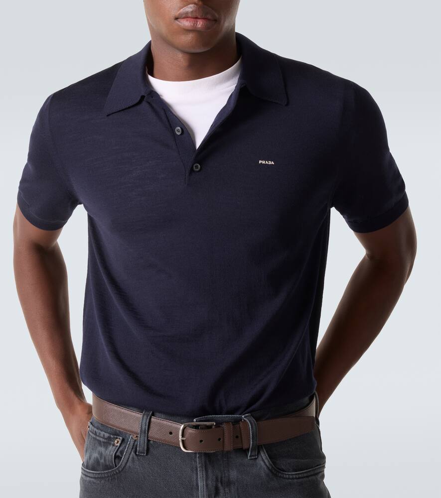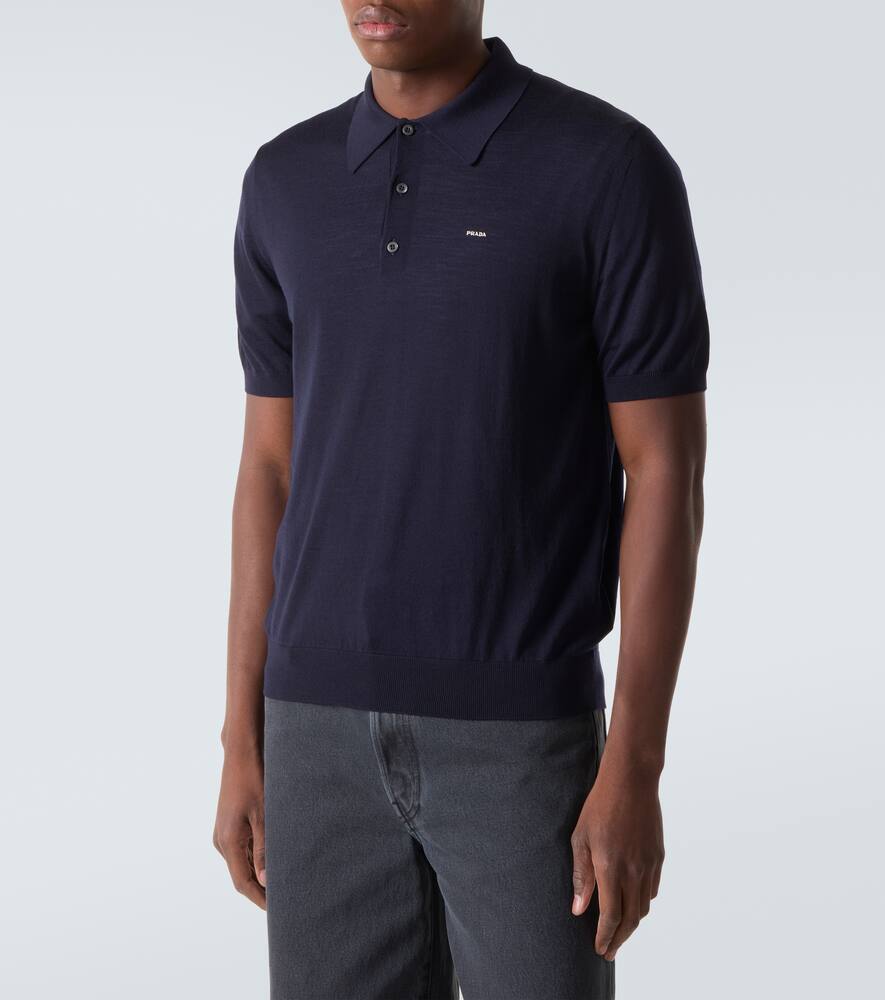 Футболка-поло из вирджинской шерсти Prada, Blue 130 518₽