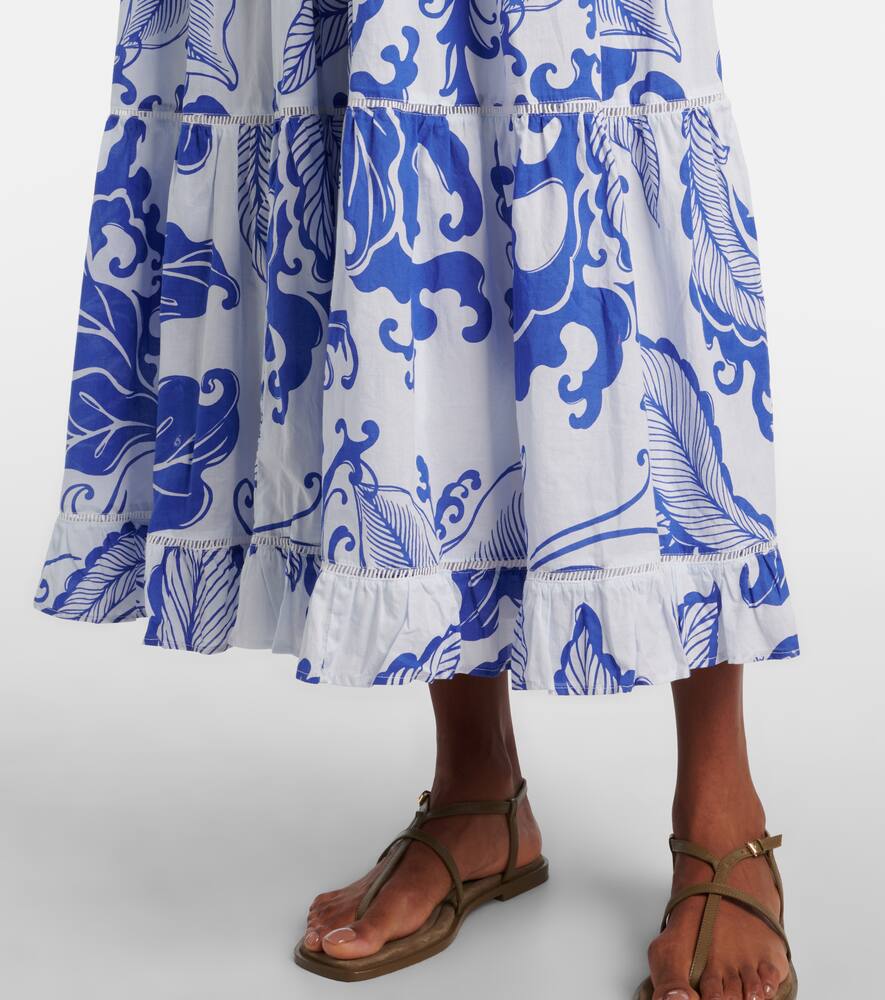 Платье макси Milena из хлопка с принтом Poupette St Barth, Blue Reef Wave